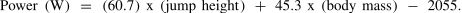 After applying the equation, the peak power was relativized by body mass (W/kg).