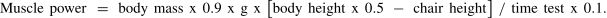Although EWGSOP2 is well established, it does not explicitly consider certain neuromuscular characteristics also affected by aging. The decline in muscle power, defined as the product of muscle force and contraction velocity,6 occurs earlier and more markedly than the loss of muscle strength or mass and is more strongly associated with functional capacity.7 Thus, assessing muscle power may provide valuable information for sarcopenia screening.