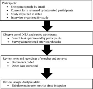 Study designThe primary aims of the study were investigated using a usability study design23 of a representative group of typical users of the DiTA database website. Study participants performed two search tasks then completed a survey of their experiences. The secondary aim of the study was achieved by conducting a retrospective analysis of DiTA users’ search behaviours.