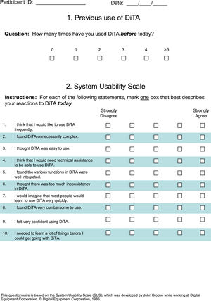 Conclusion: Typical users rated DiTA’s usability as above average, commenting frequently on its content and most often positively. DiTA's functionality was often misinterpreted during search tasks. Nevertheless, participants believed DiTA could be learnt quickly.