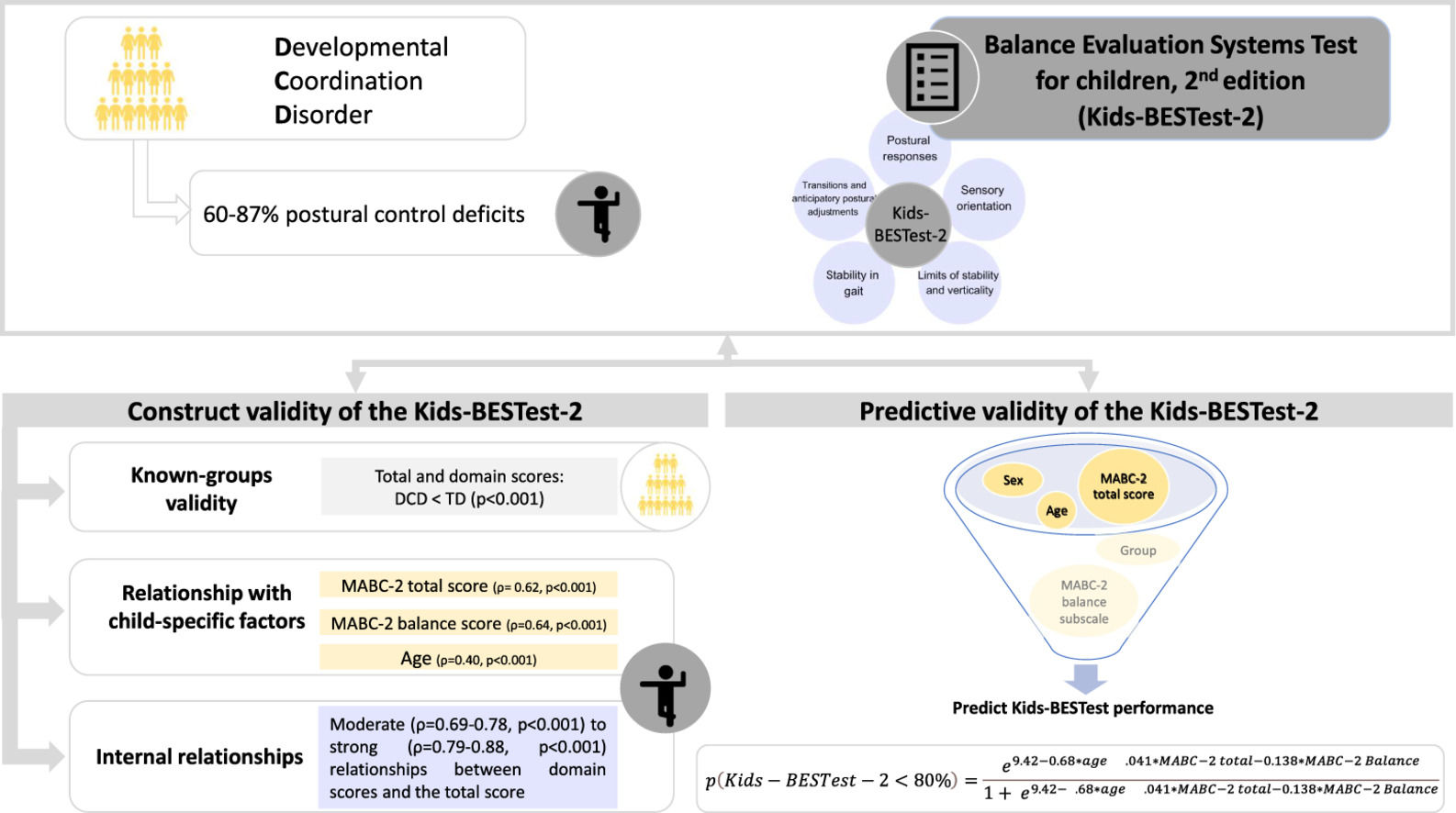 • The prediction formula helps clinicians decide to administer the Kids-BESTest-2.