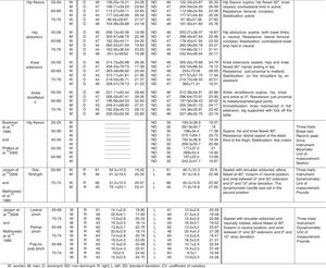 The CVs were similar to those calculated with the descriptive statistics reported by all of the studies, except for values related to the hip flexor muscles of the nondominant side reported by the studies of Backman et al.16 and Phillips et al.44: the CVs of the present meta-analysis ranged from 14% (see Table 4, CV=23.4/167) to 23.7% (see Table 4, CV=64.1/270.1), whereas those reported by Backman et al.16 and Phillips et al.44 ranged from 10.9% (CV=20/183) to 26% (CV=84/323) and 6.6% (CV=16/241) to 13.5% (CV=25/185), respectively. In general, these results indicate adequacy of reference values reported in the present meta-analysis, since they are mostly similar to those of the original studies.